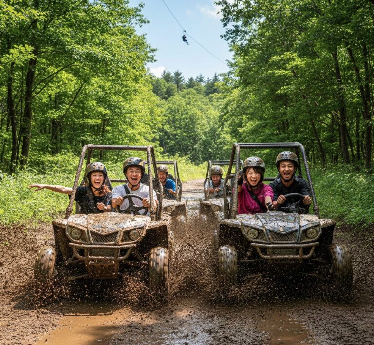 一方でネスタリゾート神戸は、「身体を使ったリアルな冒険」と「仲間との一体感」に特化しています。ここでは、演出されたストーリーよりも、自分自身の身体能力や感覚が試されます。自分の手でハンドルを握って泥道を走破したり、日本最長級のジップラインで風圧をダイレクトに感じたりと、遊びの原点である「野生」を呼び覚ますような体験が中心です。